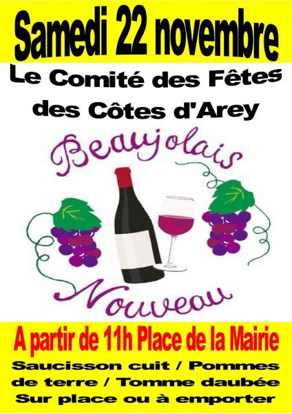 Dans une ambiance conviviale, Côtarines et Côtarins ont pu goûter le beaujolais nouveau et déguster saucisson chaud, pomme de terre et tomme daubée, préparés par Michel Thommés ( merci à lui ).
